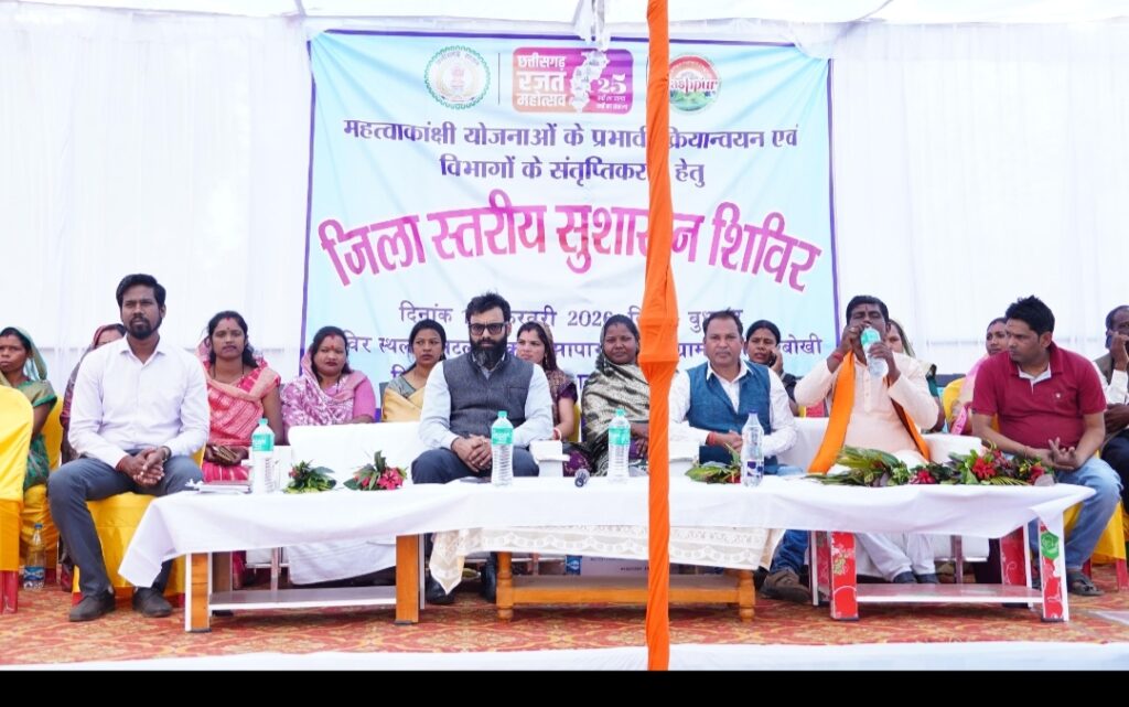 लोगों को शासकीय योजनाओं से लाभान्वित करने एवं ग्रामीणों की समस्याओं का स्थानीय स्तर पर निराकरण करने के उद्देश्य से जिले में सुशासन शिविर का आयोजन किया जा रहा है। इसी कड़ी में आज फरसाबहार विकासखंड अंतर्गत ग्राम पंचायत बोखी में जिला स्तरीय सुशासन शिविर का आयोजन किया गया। शिविर में विभिन्न विभागों द्वारा स्टाल लगाए गए, जिनके माध्यम से लोगों को योजनाओं की जानकारी दी गई। साथ ही योजनाओं से लाभान्वित किया गया। शिविर में भारी संख्या में बोखी सहित आसपास गांव के लोग शामिल हुए। शिविर में ग्रामीणों ने अपनी समस्याओं एवं मांगों से संबंधित 94 आवेदन प्रस्तुत किए।
