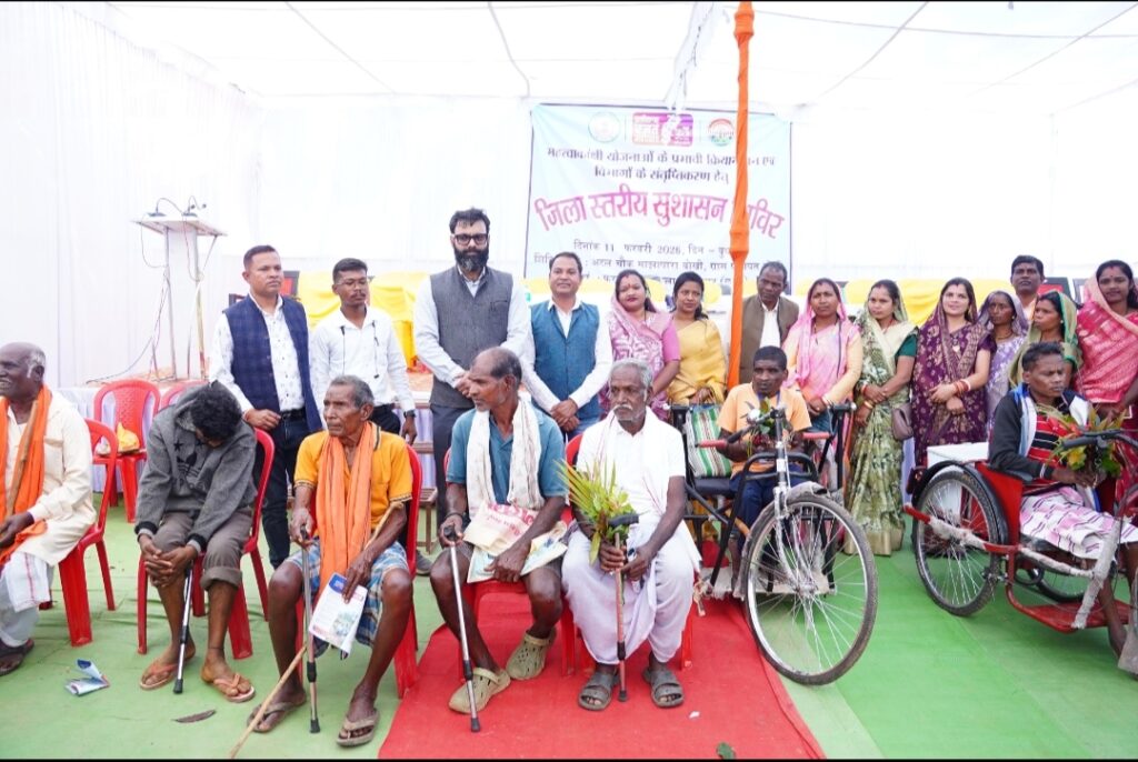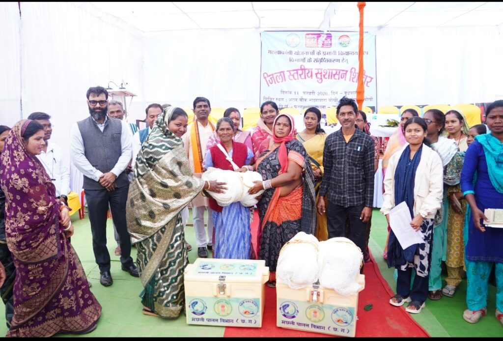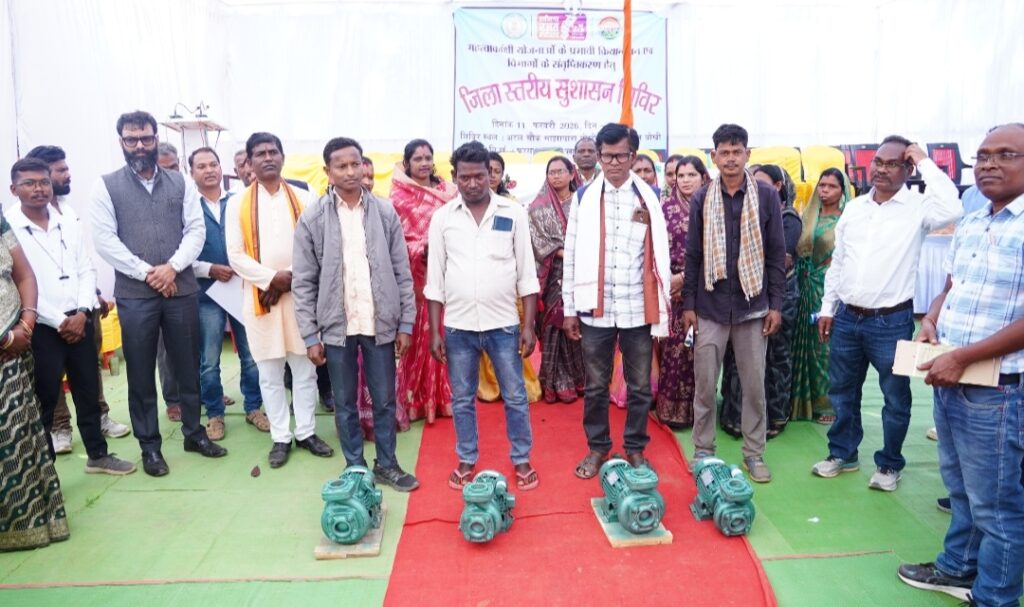 विकासखंड फरसाबहार के ग्राम बोखी में जिला स्तरीय सुशासन शिविर हुई आयोजित**ग्रामीणों के मांग एवं समस्याओं से संबंधित 94 आवेदन किये गये प्राप्त**शिविर में पीएम आवास पूर्णता पत्र, ट्राइसिकल, केसीसी कार्ड, सिंचाई पम्प, फसल बीज एवं मछली जाल का किया गया वितरण