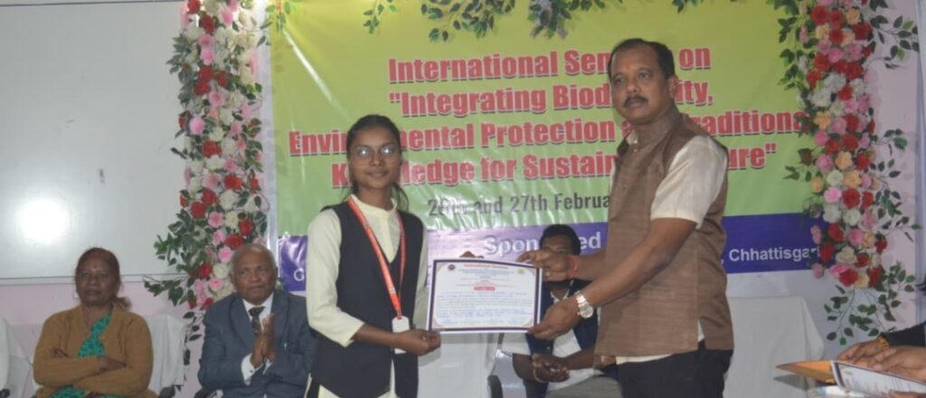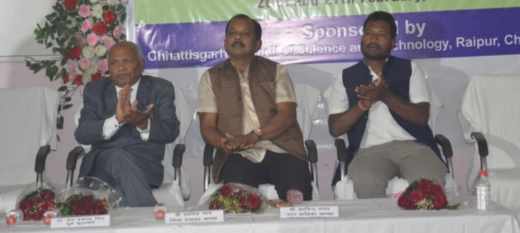 26 और 27 फरवरी को आयोजित इस गरिमामयी संगोष्ठी में देश-दुनिया के वैज्ञानिकों ने जल, जंगल और जमीन को बचाने के लिए गंभीर मंथन किया।मुख्य अतिथि ने अपने संबोधन में अनुशासन और शोध पर जोरसमापन समारोह के मुख्य अतिथि जिला पंचायत अध्यक्ष सालिक साय रहे।