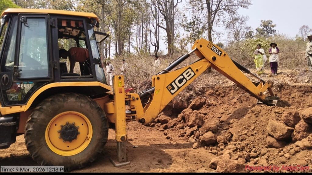7HAR3KGPNV03347121 पाई गई, जिससे वन क्षेत्र में मिट्टी खुदाई कर खेत निर्माण का कार्य किया जा रहा था। मौके पर उपस्थित जे.सी.बी. चालक श्री फुलचंद उरांव, पिता श्री मंगलेश्वर उरांव, ग्राम गुड्दरी, जिला गुमला (झारखंड) से पूछताछ कर वैध दस्तावेजों की मांग की गई। पूछताछ के दौरान चालक द्वारा बताया गया कि जे.सी.बी. के मालिक द्वारा उक्त भूमि को स्वयं की भूमि बताकर खेत बनाने हेतु मिट्टी खुदाई करने के लिए कहा गया था, जिसके आधार पर वह जे.सी.बी. मशीन से मौके पर खुदाई का कार्य कर रहा था।प्रकरण की गंभीरता को देखते हुए वन विभाग द्वारा वन अपराध प्रकरण क्रमांक 21487/25 दिनांक 09.03.2026 पंजीबद्ध किया गया तथा उपयोग में लाई जा रही जे.सी.बी. मशीन को विधिवत जप्त कर बगीचा निस्तार डिपो में सुरक्षित रखा गया है।