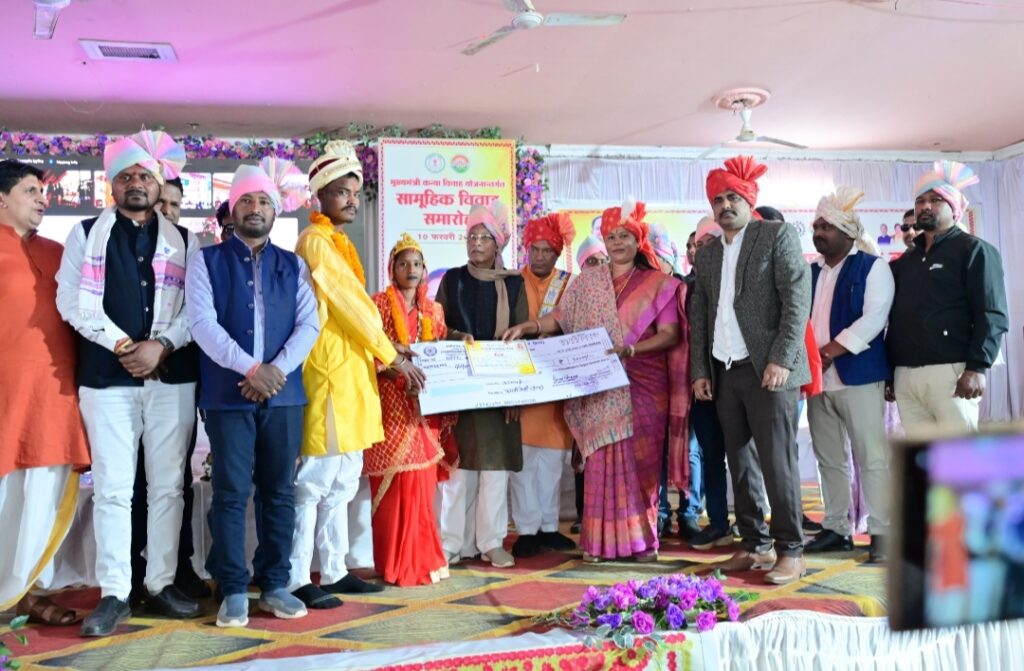 मुख्यमंत्री कन्या विवाह योजना के अंतर्गत जिला प्रशासन एवं महिला एवं बाल विकास विभाग के संयुक्त तत्वावधान में जशपुर जिले के वरिष्ठ कम्युनिटी हॉल, जशपुर में सामूहिक कन्या विवाह समारोह का आयोजन किया गया। जिला स्तरीय इस कार्यक्रम में जिले के 48 जोड़े वैदिक रीति-रिवाजों एवं धार्मिक अनुष्ठानों के साथ परिणय सूत्र में बंधकर दाम्पत्य जीवन की शुरुआत की।विवाह उपरांत सभी नवदंपत्तियों को विवाह प्रमाण पत्र प्रदान किया गया तथा शासन की मुख्यमंत्री कन्या विवाह योजना के अंतर्गत कन्या के नाम से 35-35 हजार रुपये का चेक एवं उपहार सामग्री प्रदान की गई। कार्यक्रम में नवविवाहित जोड़ों के परिजनों ने भी उत्साहपूर्वक सहभागिता निभाई।इस अवसर पर मुख्यमंत्री श्री विष्णु देव साय राजधानी से वर्चुअल माध्यम से कार्यक्रम से जुड़कर नवदंपतियों को आशीर्वाद एवं शुभकामनाएँ प्रदान कीं। उन्होंने नवदंपतियों के सुखद, समृद्ध एवं सफल वैवाहिक जीवन की कामना की।कार्यक्रम में मुख्य अतिथि पत्थलगांव विधायक श्रीमती गोमती साय ने अपने उद्बोधन में कहा कि “कन्यादान महादान होता है। विवाह मानव जीवन के सोलह संस्कारों में से एक महत्वपूर्ण संस्कार है। आज यहाँ एक-दो नहीं, बल्कि 48 जोड़े वैवाहिक जीवन में प्रवेश कर रहे हैं, जो समाज में सामूहिक सौहार्द और समरसता का संदेश देता है।” उन्होंने कहा कि बेटियाँ अपने संस्कारों से दोनों कुलों को संवारती हैं और परिवार में सुख-समृद्धि लाती हैं।महिला एवं बाल विकास विभाग के कार्यक्रम अधिकारी श्री अजय शर्मा ने जानकारी दी कि मुख्यमंत्री कन्या विवाह योजना के अंतर्गत जिले में कुल 48 जोड़ों का विवाह संपन्न हुआ, जिनमें एक दिव्यांग जोड़ा भी शामिल है। योजना के अंतर्गत प्रत्येक जोड़े को शासन की ओर से 35 हजार रुपये की सहायता राशि, उपहार सामग्री एवं विवाह प्रमाण पत्र प्रदान किए गए।कार्यक्रम के दौरान जनप्रतिनिधियों द्वारा प्रतीकात्मक रूप से दो जोड़ों को चेक एवं प्रमाण पत्र प्रदान कर आशीर्वाद दिया गया। इस अवसर पर छत्तीसगढ़ भवन एवं अन्य सन्न निर्माण कर्मकार मंडल अध्यक्ष श्री रामप्रताप सिंह, माटी कला बोर्ड के अध्यक्ष श्री शंभुनाथ चक्रवती, नगर पंचायत अध्यक्ष श्री अरविंद भगत, जनपद पंचायत अध्यक्ष श्री गंगाराम भगत,एसडीएम श्रीमती प्रियारानी गुप्ता, जनप्रतिनिधिगण, अधिकारी-कर्मचारी एवं बड़ी संख्या में नागरिक उपस्थित रहे।